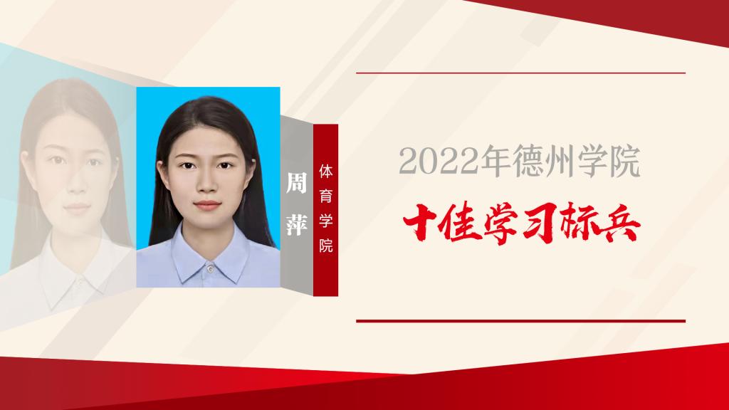 周萍,体育学院2018级体育教育专业学生。该生自入学以来,严格要求自己,自觉性强,刻苦学习,态度端正,目标明确,牢固地掌握了专业知识和技能,各科成绩优秀,做到了理论联系实际。大学四年以来成绩优秀,四年平均成绩绩点为3.98,学业成绩保持在前五,综合测评保持在前10。曾获得2019-2020学年获得校级三好学生,2020-2021学年获得综合三等奖学金、国家励志奖学金,2021-2022学年获得了2022届优秀毕业生。周萍积极提高自身能力,在校期间考取了高中体育教师资格证书,普通话证书,英语四级证书,以及与专业相各种技能证书。还积极参加各种活动,曾获得优秀支教大学生,排球优秀裁判,优秀志愿者等荣誉。通过自己的努力,以优异的成绩(422分)成功考取沈阳体育学院研究生。