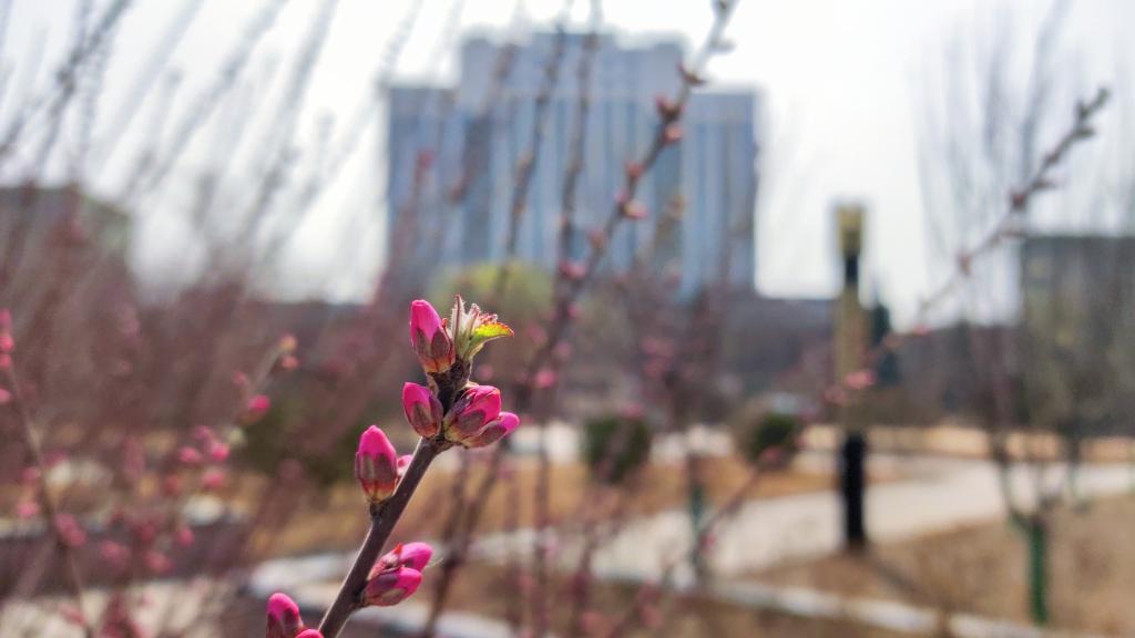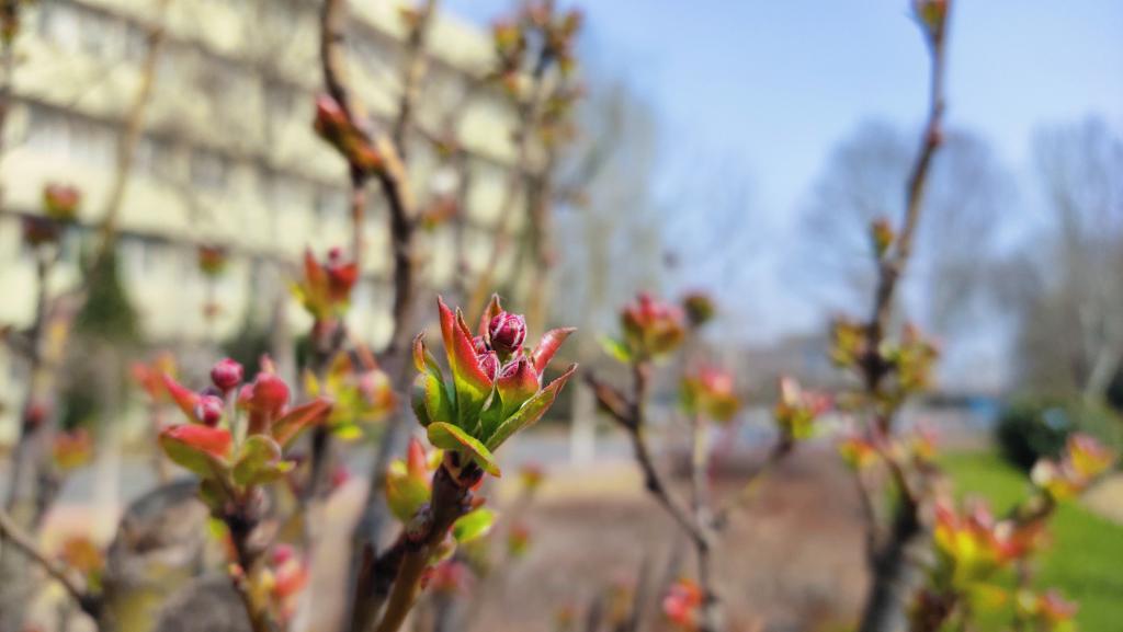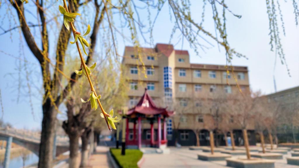春风送暖,春阳普照,大学生们拿起了手中的相机,记录下一幕幕可爱的春景。迎春花悄然绽放,春梅萌生嫩芽,柳树抽出新枝……校园被美好春光装扮一新,阳光洒过仿古建筑,一步一景,诗情画意,如诗所云:“红入桃花嫩,青归柳叶新。”