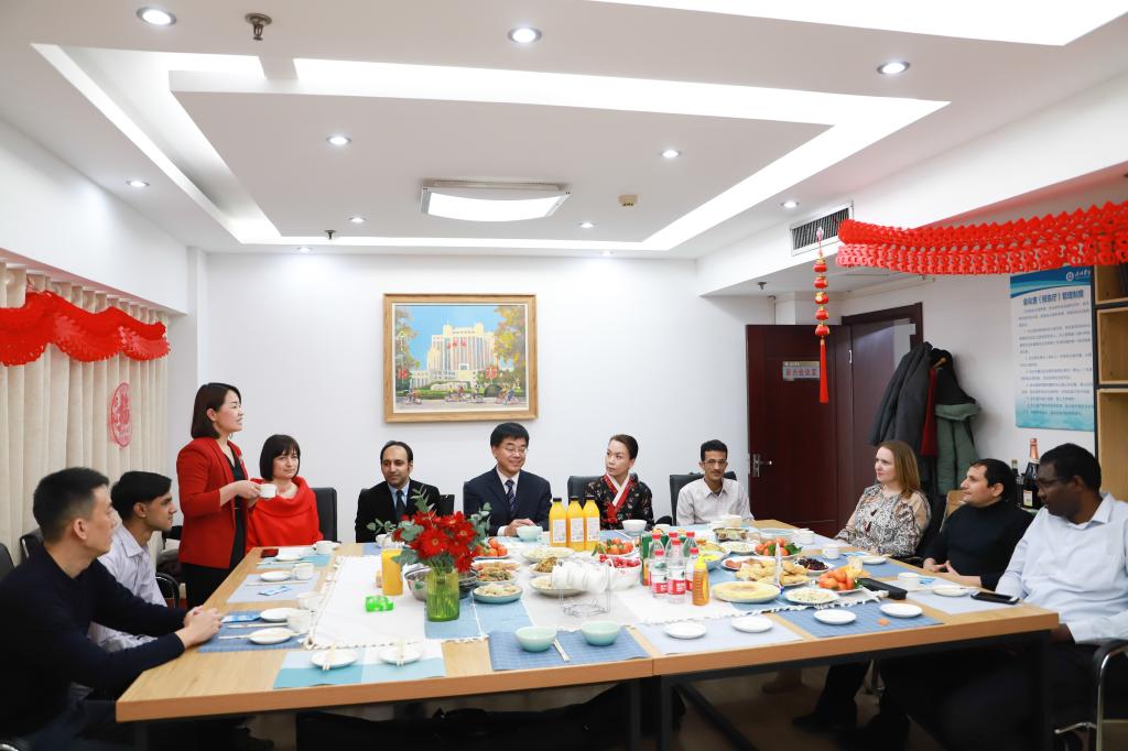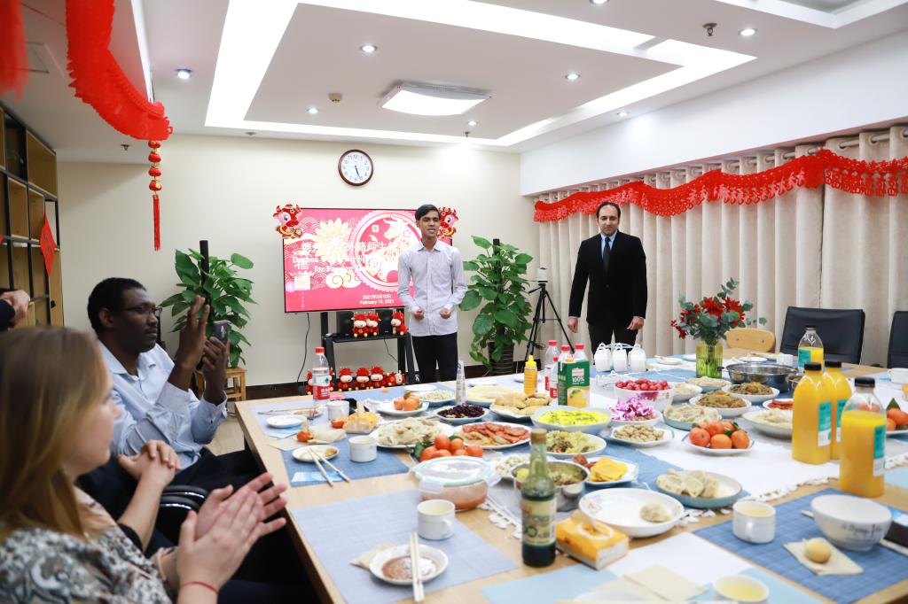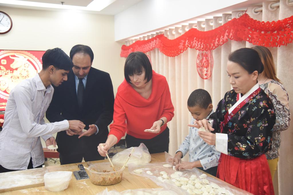 2月10日,德州学院举办了一场特别新春联欢会,学院师生代表与8名外籍教师及1名留学生互动联欢,喜迎春节。8名外籍教师及1名留学生响应号召选择寒假留校,就地过年。当日,是农历腊月二十九,德州学院新春联欢会,不但有唱歌、舞蹈等文艺节目,还组织留校外籍教师和留学生一起包水饺,贴春联、话习俗,一起感受中国传统的年俗文化,庆祝中国传统春节的到来。