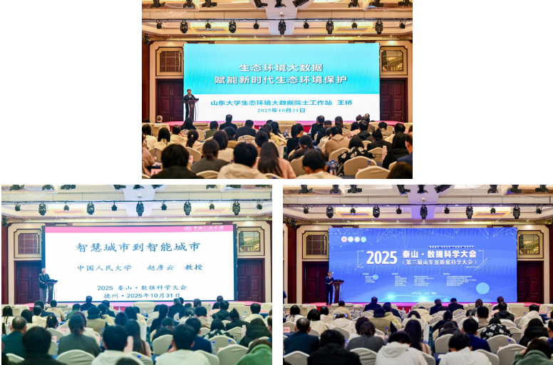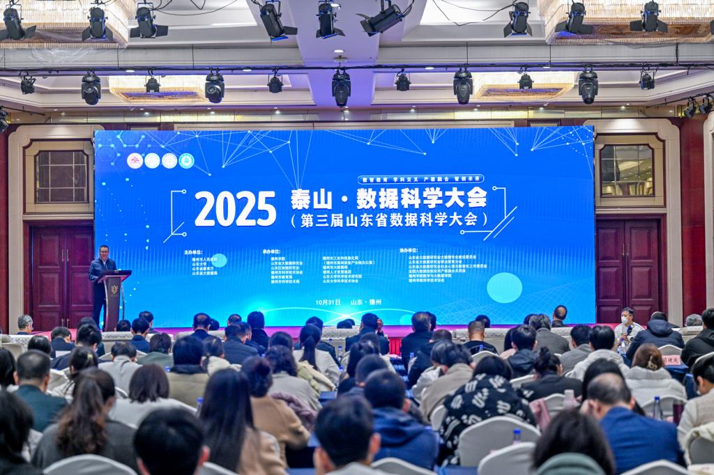 10月30日-11月1日,2025泰山·数据科学大会(第三届山东省数据科学大会)在德州举行。山东省科协党组成员、副主席袁慎庆,山东省大数据中心党委书记、主任孙海运,中国工程院院士王桥、中国人民大学统计学院教授赵彦云、山东大学石玉峰教授,德州市政协副主席齐永军,德州市科协党组书记刘辉,我校党委书记吴君,党委副书记、校长赵长林,党委委员、副校长李甲亮出席活动,赵长林主持开幕式。
