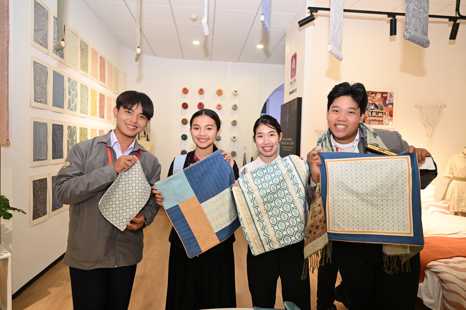 代表团来到国家纺织面料馆。馆内面料及服饰样品琳琅满目,先进的纺织技术展示令人目不暇接,泰方学生被深深吸引,惊叹连连。当纺织服装学院负责人将精心准备的、象征中泰友谊的“鲁锦吉象”礼物赠予道诺·苏提尼帕潘女士时,她微笑着双手接过礼物,脸上洋溢着喜悦,深情地说道:“感谢德州学院的用心,这份礼物我会好好珍藏。它不仅承载着两校师生的深厚情谊,更是中泰两国文化交融的珍贵记忆与永恒见证。”