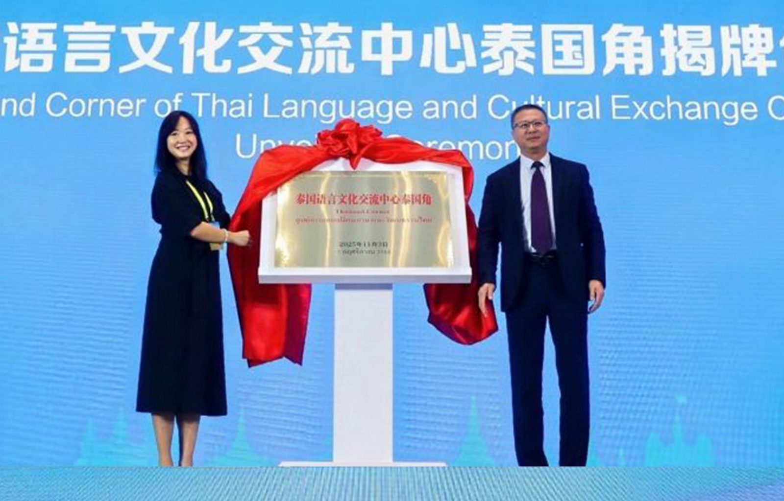在2025 黄河—湄公河交流周暨东盟中小企业合作发展山东行活动中,一场彰显友好情谊的礼节性会见正在进行,省市领导亲切会见东盟等国客人。我校党委书记吴君参加会见,并在开幕式上,与金清清共同为“德州学院泰国语言文化交流中心泰国角”揭牌,红绸缓缓落下,现场掌声如潮,气氛热烈,这一举措不仅为德州学院泰国语言文化交流中心注入了新的动力和活力,更标志着中泰教育文化合作迈入了新的发展阶段,成为双方深化交流、增进友谊的又一重要契机。