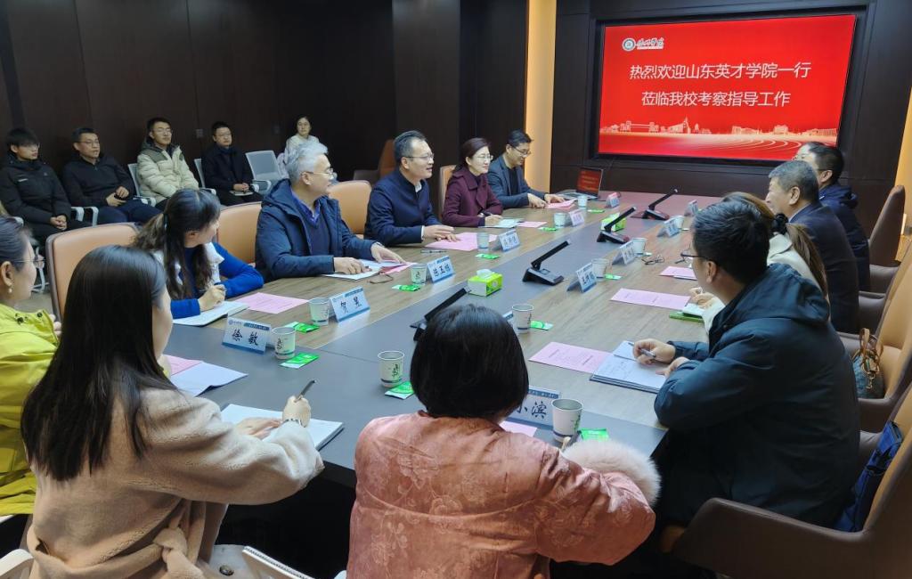 11月26日,山东英才学院党委委员、副校长崔奎勇一行来我校考察就业创业工作。校党委委员、副校长蒋涛涛陪同考察并进行座谈交流。