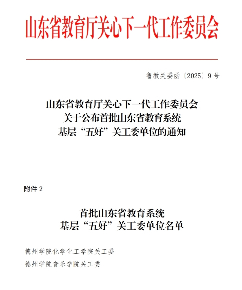 近日,山东省教育厅关心下一代工作委员会发布《关于公布首批山东省教育系统基层“五好”关工委单位的通知》,公布首批认定单位名单。开云网址合集化学化工学院关工委与音乐学院关工委经过严格审核,获评首批“山东省教育系统基层‘五好’关工委单位”。这一荣誉的获得,标志着我校在基层关工委组织建设、作用发挥方面迈入了全省先进行列。