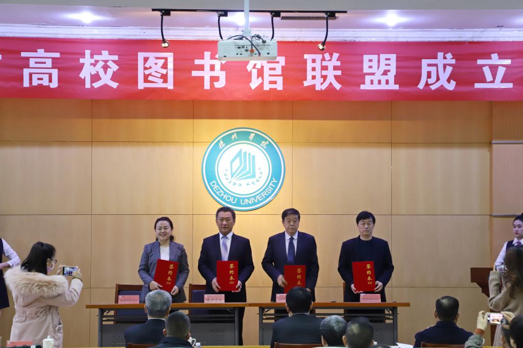 会上还宣读了《德州市高校图书馆联盟章程》,公布了《首届德州市高校图书馆联盟指导委员会、工作委员会名单》。来自四所高校的副校长签署了入盟协议书并分别为成员馆授牌。