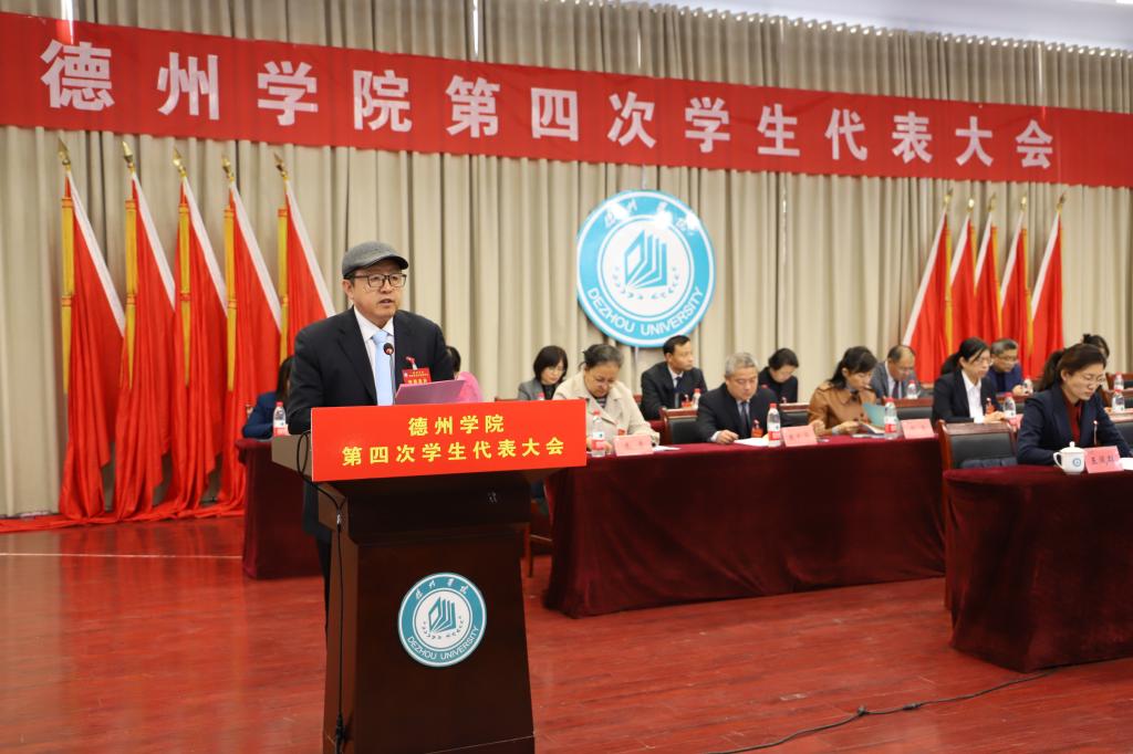 在嘹亮的校歌声中,德州学院第四次学生代表大会胜利闭幕。闭幕式结束后,德州学院第四届学生委员会第1次会议召开,新当选的学生会主席团代表表态,团委聘任专职团干担任学生会秘书长,团委主要负责人讲话。