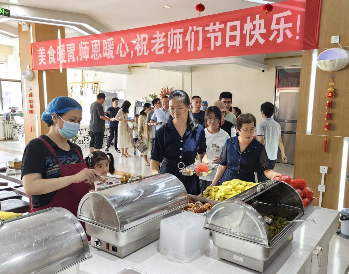 在教职工餐厅,更是推出了教师节“美食暖胃 感谢师恩”活动,为教师们精心准备了营养均衡、搭配科学的“教师节”美食套餐,还特别精心准备了精美的花束和定制礼物。从菜品的细致调配到就餐环境的温馨布置,每一处细节都彰显了后勤服务的用心用情,让教师在忙碌之余,享受到如家一般的舒适与温暖。