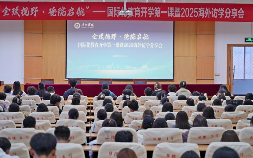为帮助2025级新生在入学伊始锚定发展方向、拓展全球视野、提升跨文化沟通能力,科学规划大学四年生涯,10月14日,“全球视野·德院启航”系列活动之一—国际化教育开学第一课暨2025海外访学分享会在厚德楼四楼报告厅举办。