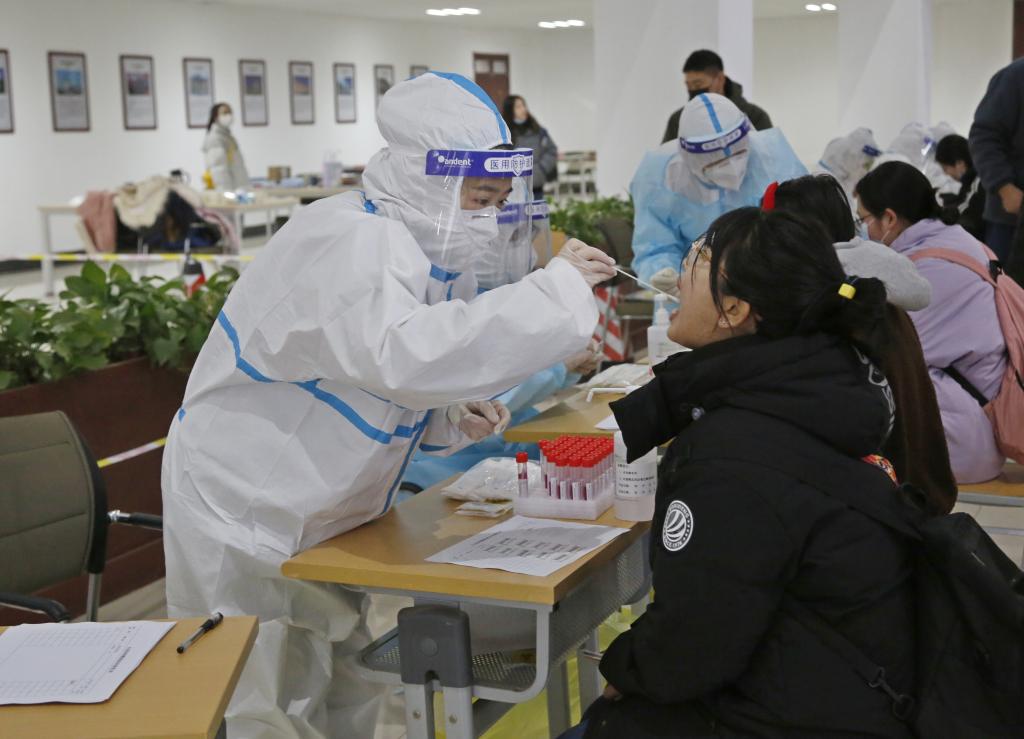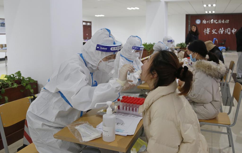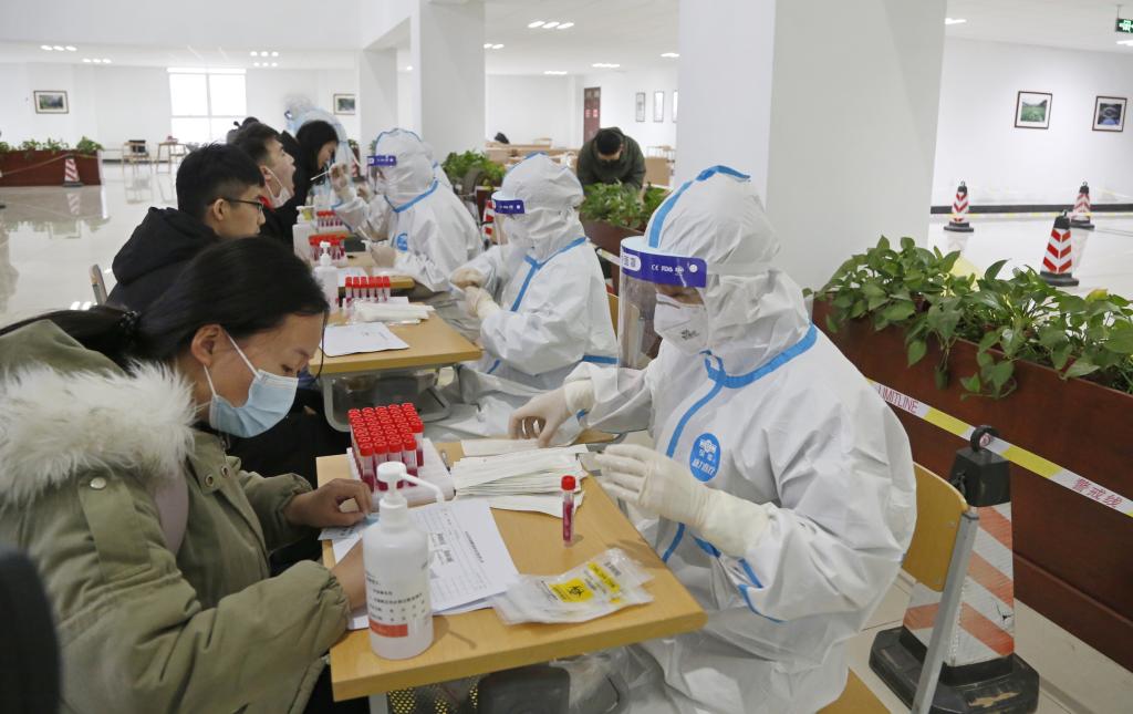 12月23日8点30分到13点10分,我校3431名2022届考研学生在博文楼北门大厅内有序完成核酸检测。