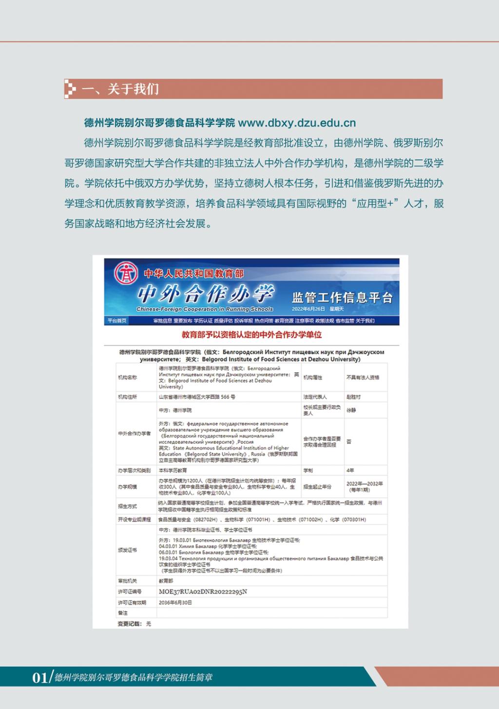 德州学院别尔哥罗德食品科学学院招生简章