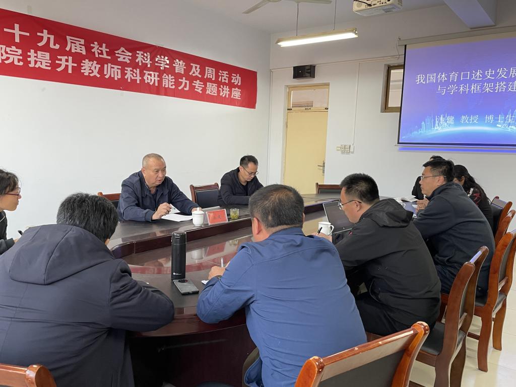 4月7日—8日,体育学院举办国家社科课题申报研讨会,研讨会邀请了北京体育大学原校长、博士生导师池建教授,天津体育学院硕士生导师崔国文副教授指导讲座。