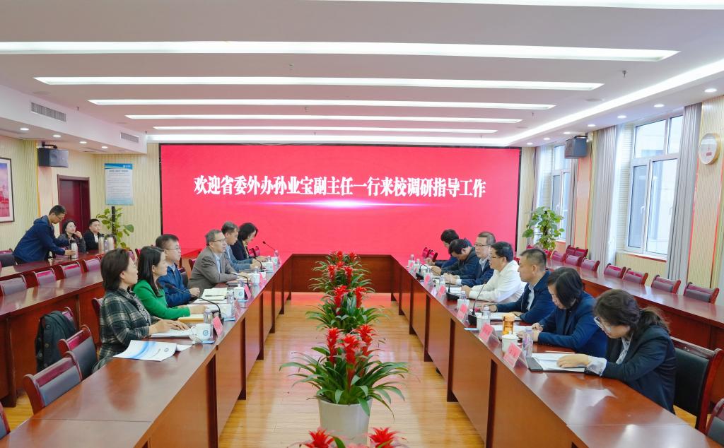 10月26日,山东省外办副主任孙业宝一行来校调研指导东盟研究中心建设工作,省外办宣传调研处处长曹春、副处长刘纯峰,德州市外办党组书记、二级巡视员蔡文晓,副主任谭明明及相关工作人员陪同调研。我校党委副书记、校长赵长林,党委委员、副校长刘印房热情接待了客人并在会议室进行座谈。