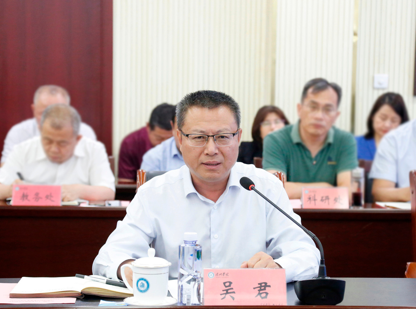 吴君对各位专家的辛勤付出和精心指导致以崇高的敬意和诚挚的感谢。他强调,专家组列出的本科教育教学工作“问题清单”,是一份权威的办学治校“体检报告”,学校完全赞同、全盘接受,并将认真学习领会、深入分析研究、精心制定方案、严格整改落实,真正将评估实效转化为推动学校高质量发展的新动力。一是突出问题导向,以严格的标准抓好整改落实。坚持把抓好评估整改工作作为学校当前和今后一段时期的重点工作,认真研究专家组提出的问题、意见和建议,深刻剖析根源,制定整改方案,建立清单台账,明确整改时间表、路线图、责任人,确保整改目标责任到位、工作措施到位、任务落实到位。二是坚持立德树人,持续提高教育教学质量。坚持以评估整改为抓手,以立德树人为根本,坚持以本为本,落实“四个回归”,坚定不移把提高教育教学质量和人才培养水平作为学校的永恒主题和长期任务,切实将“学生中心、产出导向、持续改进”理念落实到教育教学各环节、贯穿于人才培养全过程。三是聚焦内涵建设,加快推进高水平应用型大学建设。把整改提升作为学校补短板、强弱项、固底板、扬优势的重要契机,全面查找短板差距,对标对表,加压奋进,群策群力,团结调动一切办学资源,加快推进高水平、有特色、国际化应用型大学的前进步伐,为建设教育强国、科技强国、人才强国和区域经济社会发展作出应有贡献。