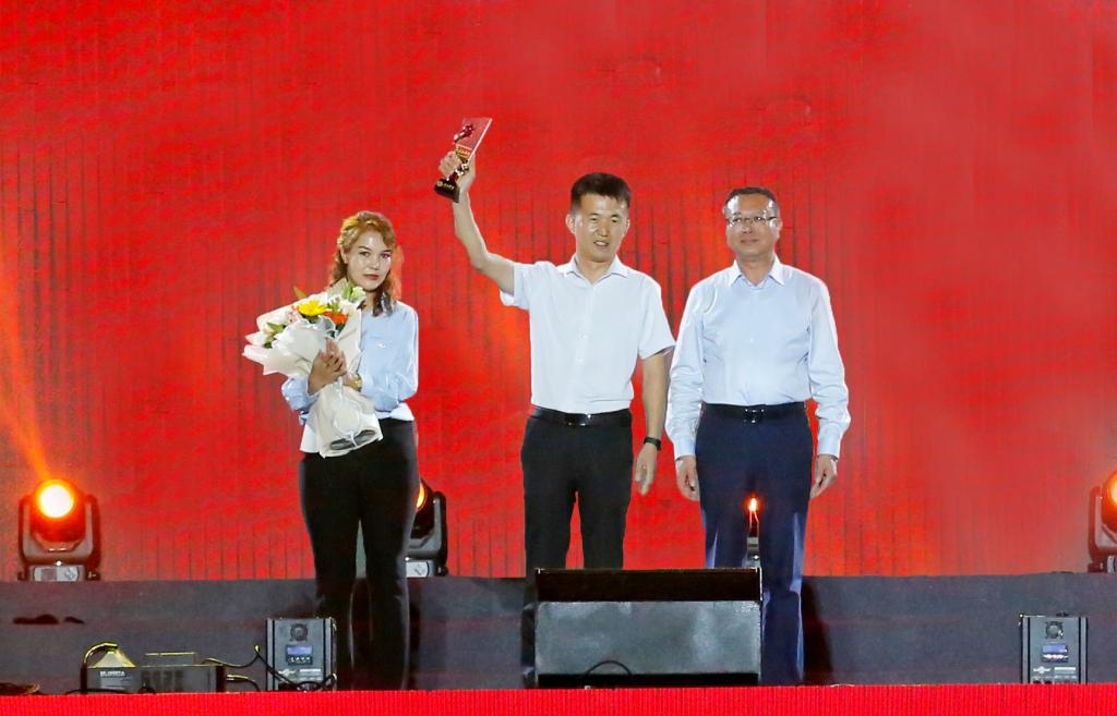 演出现场,校党委书记吴君为西部计划志愿者、全国高校毕业生基层就业卓越奖学金获得者颁奖。