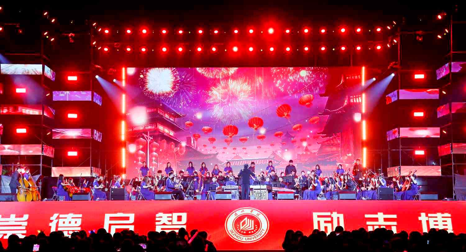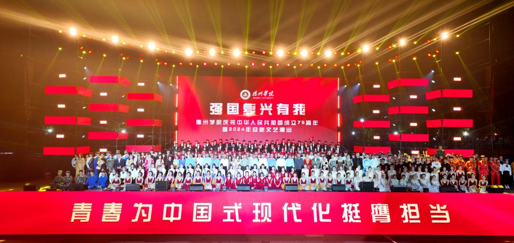 奋进强国路,阔步新征程。9月27日晚,德州学院“强国复兴有我”庆祝中华人民共和国成立75周年暨2024年迎新文艺演出在学校体育场举行。校领导吴君、赵长林、张存峰、徐静、崔新乐、刘印房、李甲亮、蒋涛涛、杨斌、冯琨出席并观看。演出以“线下主会场+线上分会场”的方式进行。