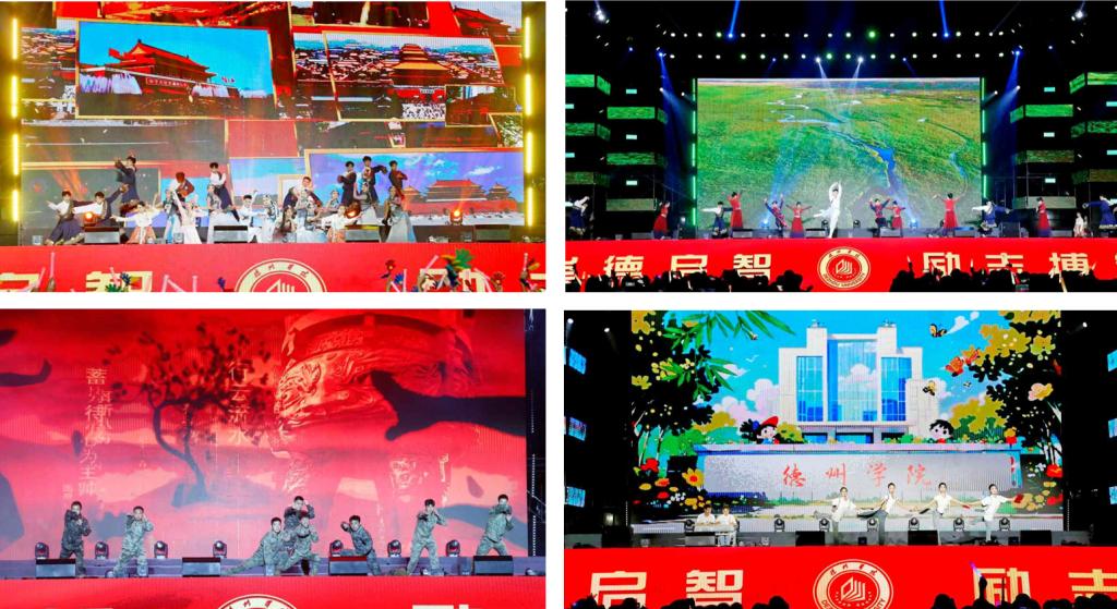 夜幕璀璨,灯光闪烁。演出分为“青青子衿 遇见德院”“芳华待灼 学在德院”“奋发筑梦 启航德院”三个篇章。赞颂中华人民共和国成立75周年来取得的伟大成就,诠释对党和祖国的忠诚和热爱,生动展现师生昂扬向上、团结进取的精神风貌,营造了德院人庆祝中华人民共和国成立75周年的浓厚氛围。
