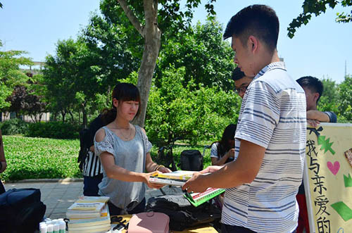 为让毕业生在文明安全离校的同时,也为母校留下美好的回忆,6月9日,纺织服装学院举办了“心系母校”系列活动。 活动分为“文明离校,幸福毕业”签名、“我为母校留纪念”物品赠送、“我和亲爱的母校”摄影作品展、“一书,一签,一份情”制作书签赠送四个板块。活动中,毕业生积极参与到签名活动中,表示一定会遵守承诺,文明离校。同时,还将自己的书籍、笔记等物品赠送给母校,写下自己对母校的期望和祝福。同时,大一和大二同学也亲手为毕业生制作了精美的书签,表达对他们的美好祝福,也为“毕业季”增添了一抹温情。