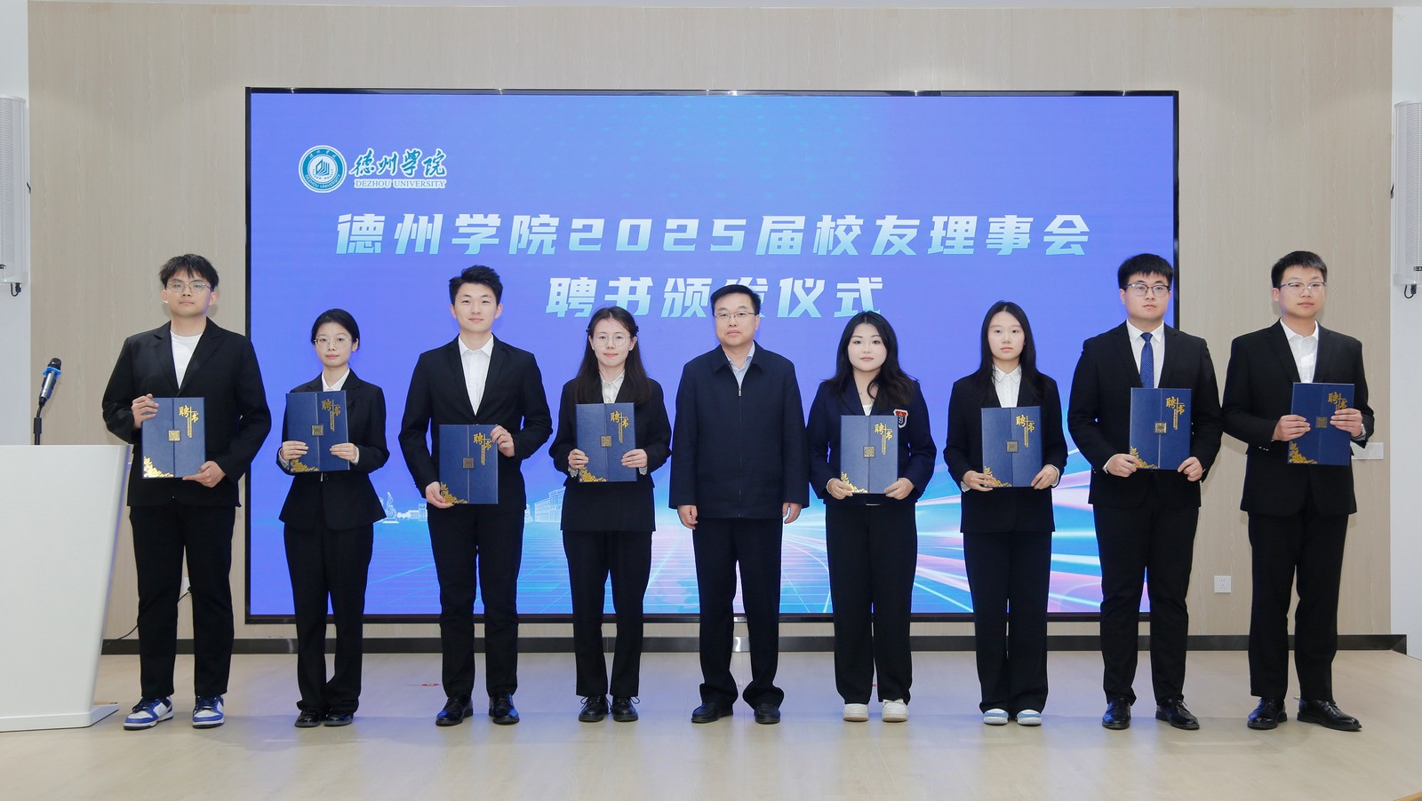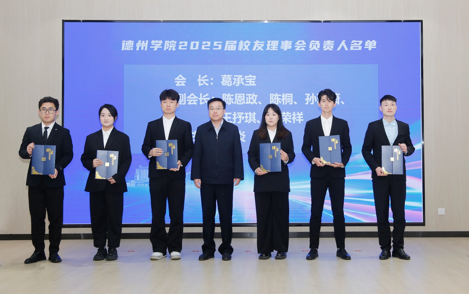 蒋涛涛宣读《关于成立德州学院2025届校友理事会的决定》。赵长林为2025届理事会成员颁发聘书。2025届校友理事会会长、化学化工学院葛承宝发言。