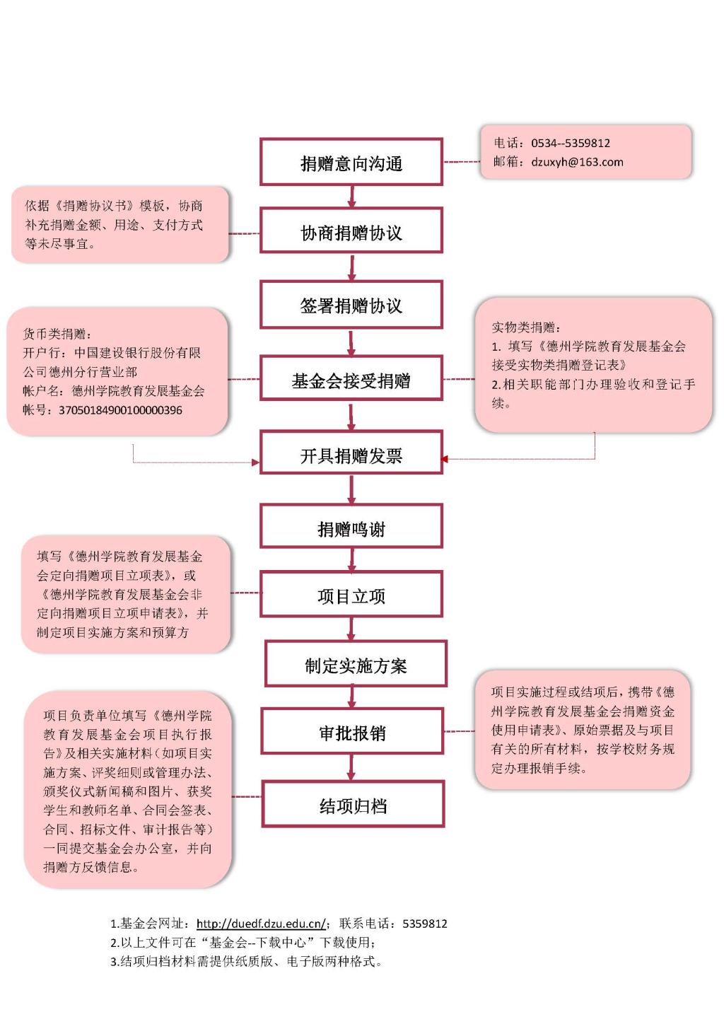 德州学院教育发展基金会接受社会捐赠工作流程